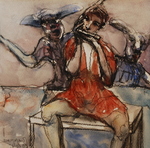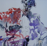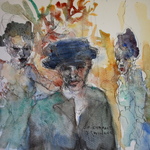 Deze werken voegen kleur -; dus een dimensie toe, maar hebben verder dezelfde doelstelling als de schetsen: mensen en met wat hen beweegt, ontroert;..., zo treffend weergeven, dat hun 'zijn'gevat wordt. Althans zoals ik dit interpreteer. Gezichten en houdingen zijn hierbij de spiegel van de ziel, en bijgevolg belangrijk in mijn werk.